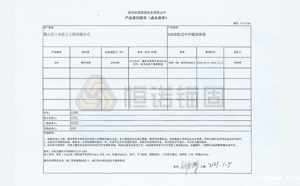 客户的肯定是对我们最大的鼓励,客户的真实反馈,能够帮助我们更好的优化产品和服务。我们用心聆听客户声音,用行动满足客户需求。我们携手,让岩土锚固更快更省更安全。