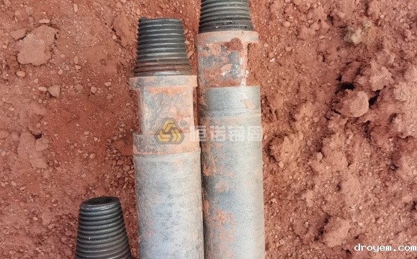 钻杆的施工过程是和钻头一起作用,通过钻机设备的钻进和连接头的连接接长实现更深的钻进作业,钻进完成后,逐根把钻杆取出以便下次重复使用。