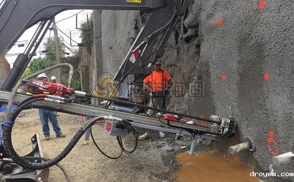 采用自钻式锚杆进行断层破碎带岩石边坡支护,施工过程中需要注意保证钻进深度,确保灌浆饱满,充分,使用自钻式锚杆专用钻机施工....